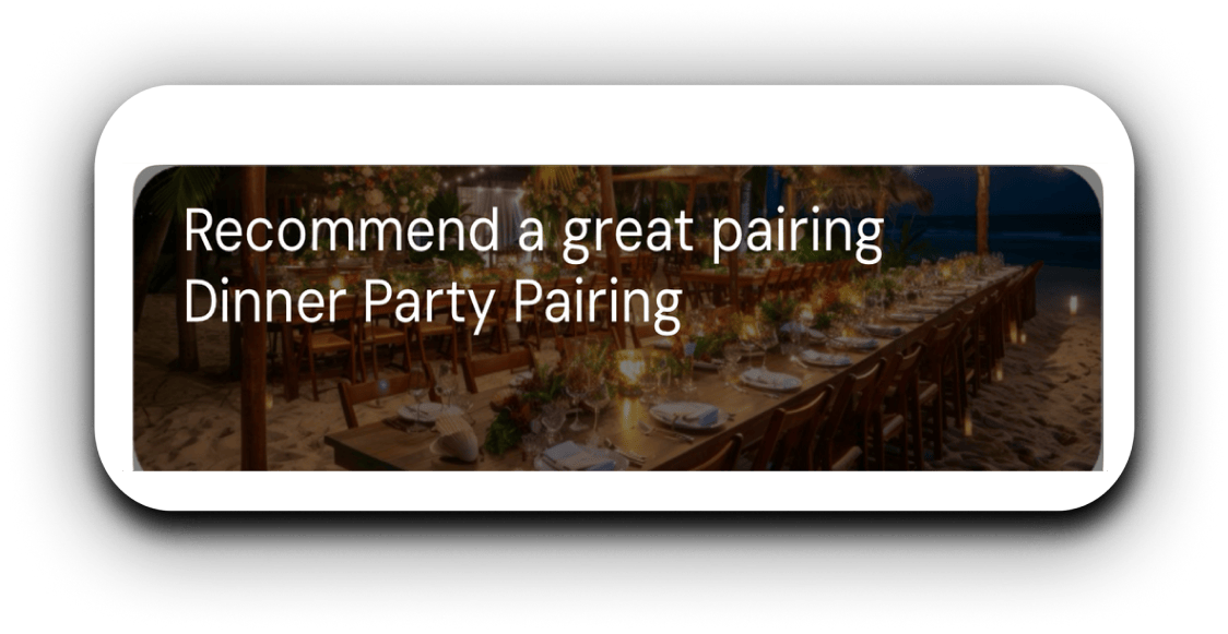 Get instant wine pairing advice with Pairable’s AI Chat feature. Ask about pairings, hosting tips, or storage suggestions, and receive tailored answers anytime. Your 24/7 wine expert is just a question away!