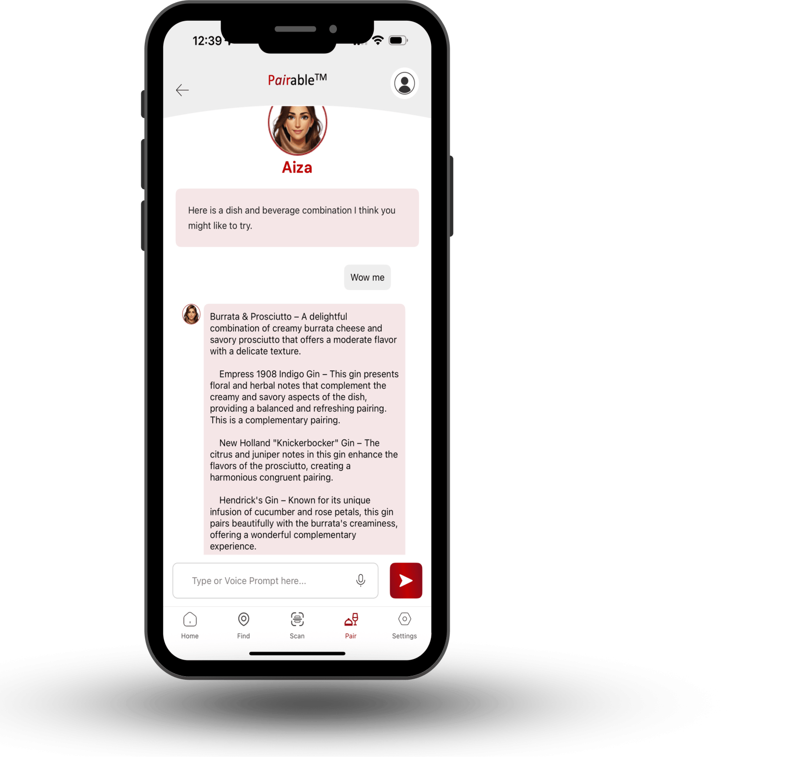 Aiza analyzes menus, wine lists, your preferences (price, taste, dietary needs), and even your mood to recommend pairings. You can also choose a dish or wine to start the pairing process.