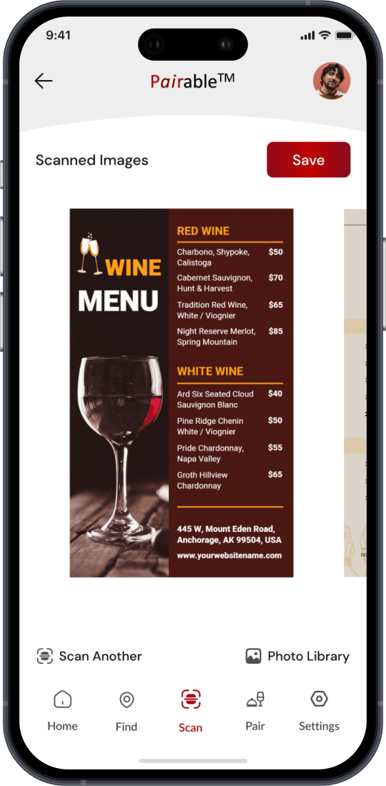 Not sure which wine to choose with your meal? Simply scan the restaurant’s menu with Pairable, and let us do the work! Instantly receive personalized wine pairing recommendations for each dish. Whether you’re in the mood for a bold red or a crisp white, Pairable helps you make the perfect choice. Save your favourite pairings, share them with friends, or explore new combinations. Elevate your dining experience with confidence—just scan, pair, and enjoy!